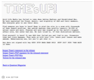 As republished in the Sydney Morning Herald on 22 August 2015, The Impact Team said: “We were in Avid Life Media a long time to understand and get everything… Nobody was watching. No security[3].”